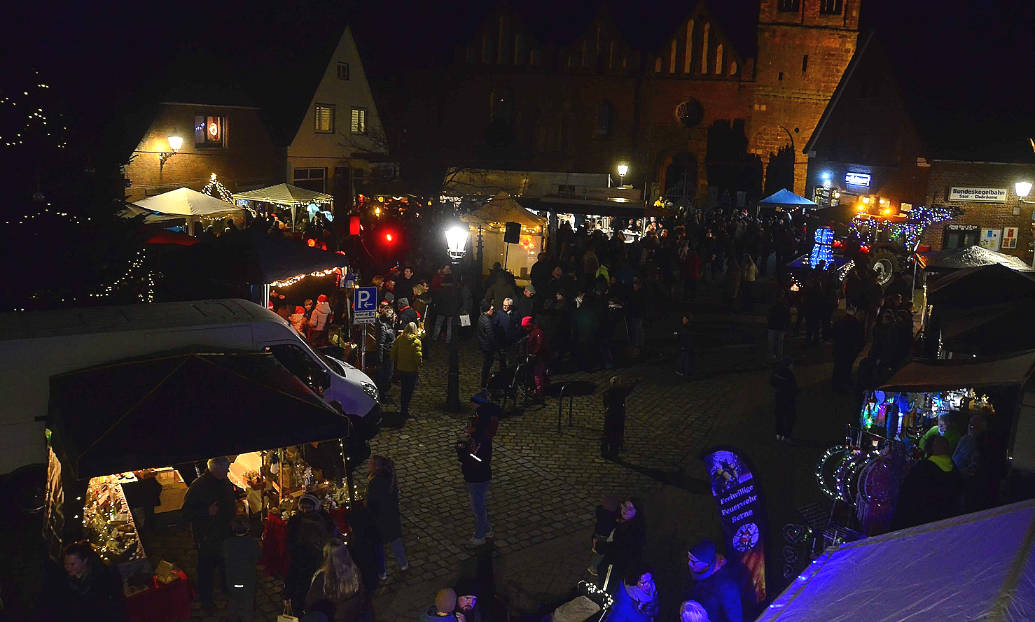 Hoch her ging es am ersten Adventswochenende auf dem Berner Breithof beim Weihnachtsmarkt, den wieder André Burkert, Heinz-Georg Helms und Jörg Jacobs organisiert hatten. Von Knipp der Stedinger Rassegeflügelzüchter, über Erbsensuppe des Bürger- und Heimatvereins, Gegrilltem der Feuerwehr bis zu Crêpes der Zehntklässler der Oberschule und vielem mehr reichte das kulinarische Angebot.