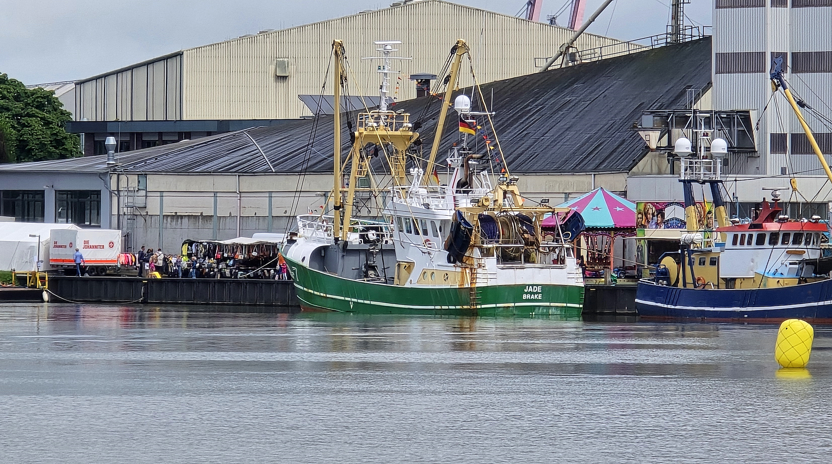 Am Vormittag tummelten sich auf dem Platz am Binnenhafen, neben dem Vereinsheim nicht nur die Mannschaften, die es sich alle unter ihren Pavillons gemütlich gemacht hatten, sondern auch zahlreiche Besucher, da das Kutterpullen beim Binnenhafenfest immer ein Anziehungspunkt ist. Doch als am Vormittag dann wieder der Regen einsetze, waren die Mannschaften und die rund 25 Helferinnen und Helfer des BRSV nahezu unter sich. Den ganzen Vormittag wurden jedoch die kleinen Hafenrundfahrten durch den Binnenhafen gerne genutzt. In einem Motorkutter, der als Marinerettungsbootgebaut wurde, steuerte Jens Schütte die Besucher sicher durch den Hafen.