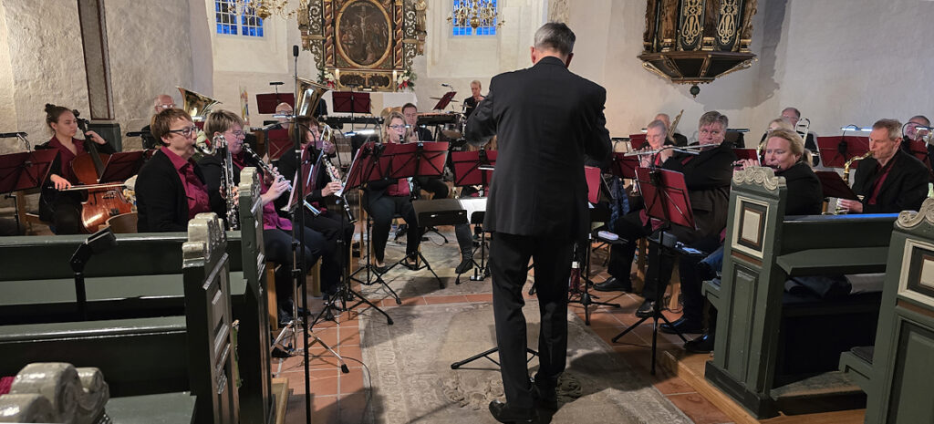 Besonderen Spaß hatten einige Musiker bei ihrer kleinen Gesangseinlage „Rudolph, the red nosed raindeer“. Nach dem Lied „Sayonara“ von Jan van der Roost endete das Konzert. Das Publikum spendete lange stehend Applaus und das BSW-Orchester gab zwei Zugaben, mit einem Spiel auf der Orgel. Als letztes Lied, auch das hat bereits Tradition, erklang „Highland Cathedral“ von Ulrich Roever und Michael Korb. (Fotos und Text: Kerstin Seeland)