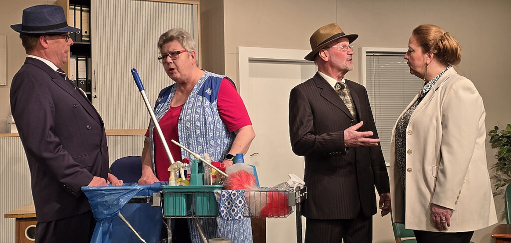 Die Komödie mit kriminalistischem Hintergrund in drei Akten, wird in der deutschen Bearbeitung von Christian Wölffer und von Hans-Jürgen Ott ins Niederdeutsche übersetzt, auf der Bühne der Berfufsbildenden Schulen Brake aufgeführt. Die Inszenierung des Stücks hat Manuela Schöler übernommen, die in 2026 ihr zehntes Regiejahr feiert.