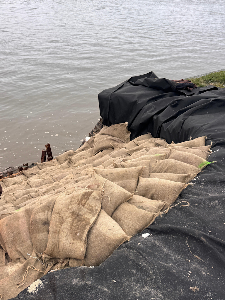 An der Hinrich-Schnitger-Straße kam es zu einem besonderen Einsatz: Ein kleiner Teil einer Flutmauer ist bei einem Grundstück in die Weser abgerutscht. Dadurch bestand die Gefahr, dass der Deich weiter ausgespült wird und größerer Schaden entsteht.