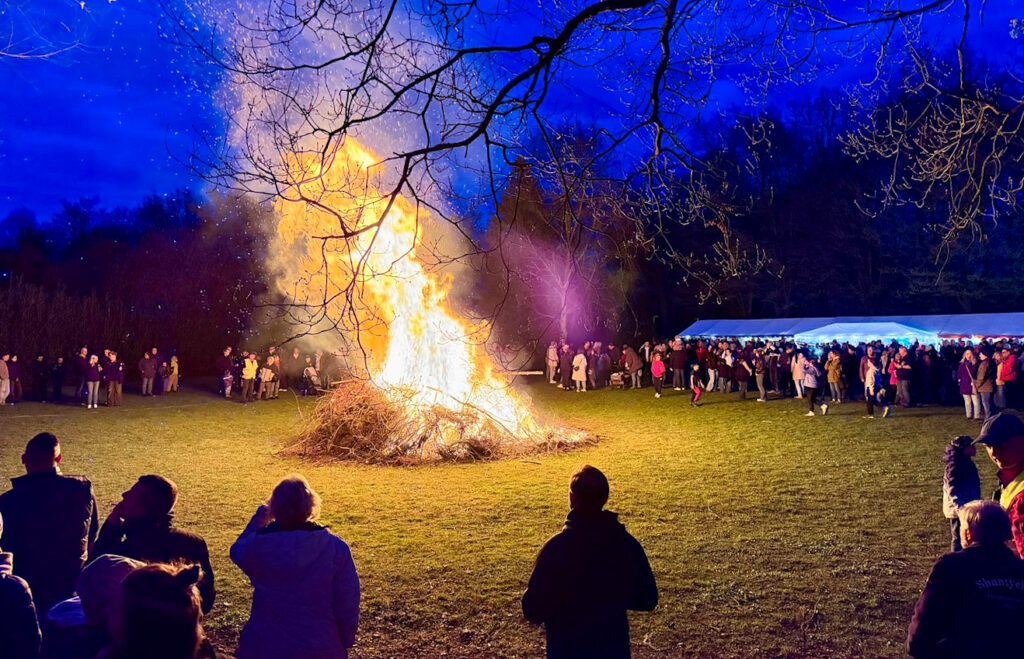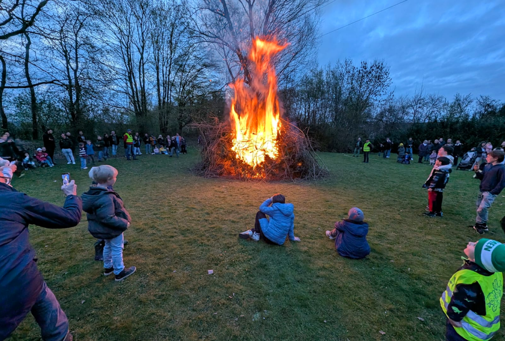 Bei einsetzender Dämmerung wurde der Sträucherhaufen entzündet. Jung und Alt hatten hier sichtliche ihre Freude und gefeiert wurde noch bis in die Nacht, als das Feuer schon heruntergebrannt war. (Text: Kerstin Seeland, Titelfoto: Uwe Peglau)