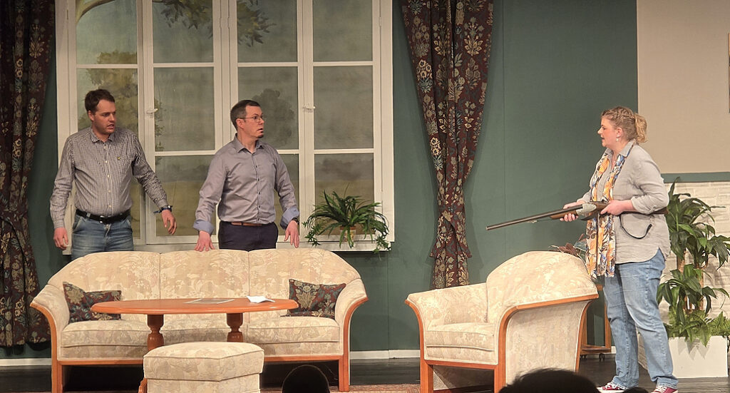 Allein der Text, die Drei für das Stück zu lernen hatten, ist gewaltig. Sie müssen sich zudem gegenseitig „die Bälle zuspielen“ und das ist dem Tempo des Stücks ein große Herausforderung, die allesamt mit Bravour gemeistert haben. Hinzu kommt ein wundervoll gestaltetes Bühnenbild, das den Zuschauer in ein ganz normales Wohnzimmer eines Ehepaares mitnimmt, das um die 60 Jahre alt ist.