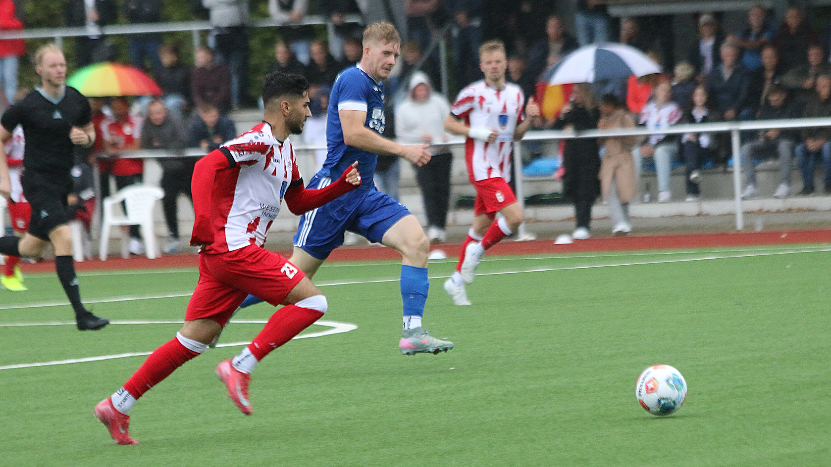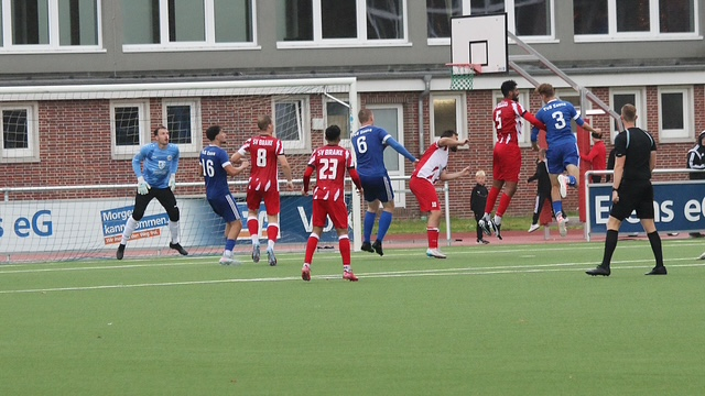 Die Partie begann mit viel Tempo – besonders von Seiten der Gastgeber, die in den ersten Minuten viel Druck machten. Bereits nach fünf Minuten hatte Esens eine erste Gelegenheit, die Brake jedoch entschärfen konnte. Auf der Gegenseite hatte der SVB Pech, als ein Abschluss in der 8. Minute nur am Pfosten landete.