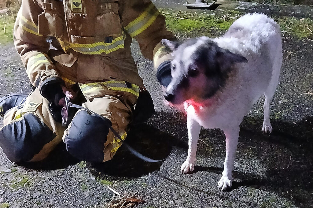 Der Besitzer konnte das Tier noch festhalten, aber nicht selbst herausziehen. Die Kameradinnen und Kameraden ließen das Feuerwehrschlauchboot zu Wasser und retteten den Hund aus seiner misslichen Lage. Der Besitzer wurde somit entlastet und konnte vom Rettungsdienst untersucht werden.