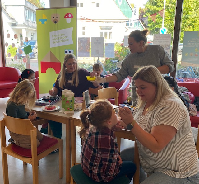 Ca. 150 Gäste waren anwesend. Unsere Kindertagespflegepersonen hatten Muffins vorbereitet Schminken und Tattoos angeboten. Anne Drosdek hatte zahlreiche Angebote gehabt, von denen das Gestalten von Freundschaftsbändern und Teddys aus kleinen Putzlappen am Beliebtesten waren.