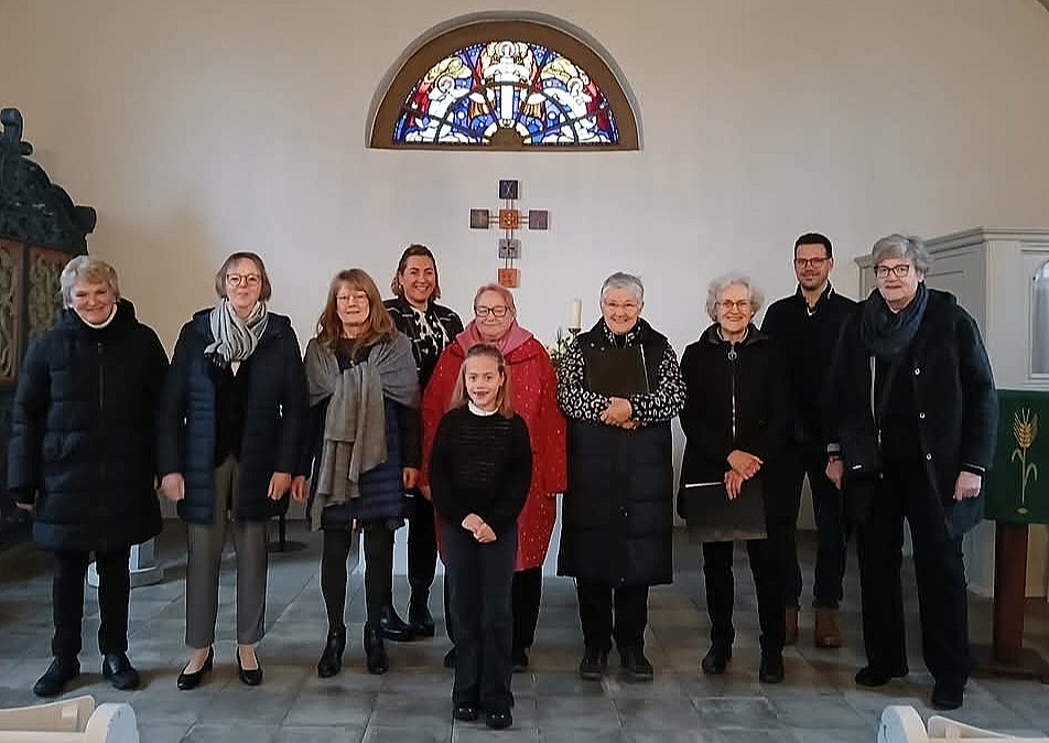 Sängerinnen im Alter von 8- 80 Jahren haben den Gottesdienst bereichert. Das festliche Orgelvorspiel übernahm die junge Schülerin Mayla aus der privaten Musikschule „Haus der Musik“, sie spielte die Ode an die Freude, die Europahymne von Ludwig van Beethoven, gefolgt von dem Chorgesang „Verleih uns Frieden gnädiglich“ und dem Segenslied „Möge die Straße“. Den Gottesdienst hielt Pastor Berthold Deecken aus der Gemeinde Jade.
