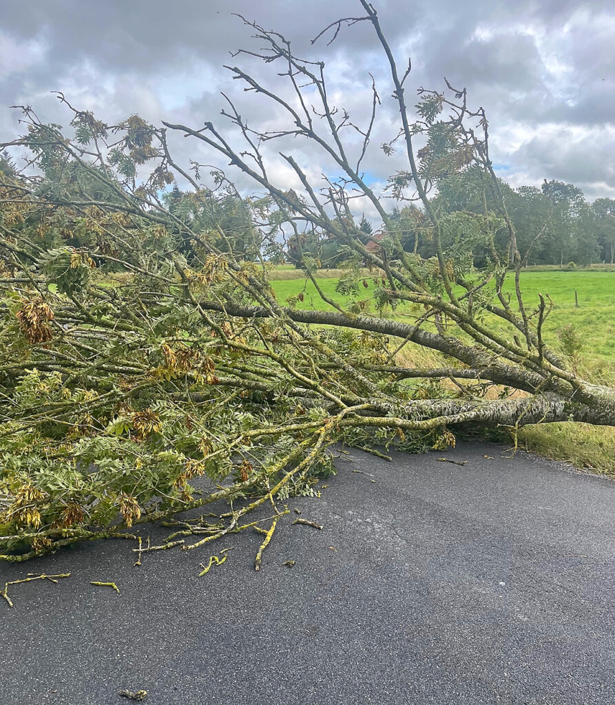 Das erst Sturmtief des Spätsommers / Herbstes hatte in Rönnelmoor einen umgestürzten Baum und somit eine blockierte Straße zur Folge. Mit dem Einsatz von Kettensägen wurde durch die 15 Feuerwehrleute das Hindernis schnell beseitigt und wieder freie Bahn geschaffen.