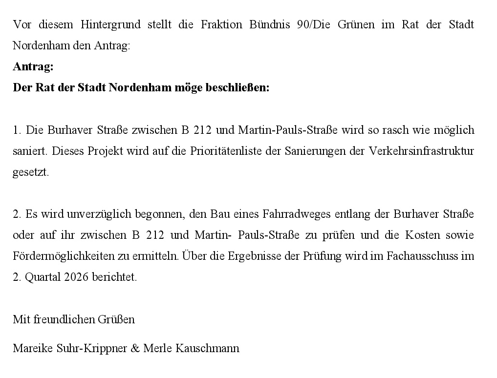 Nordenham – Antrag der Stadtratsfraktion der Bündnis 90/Die Grünen