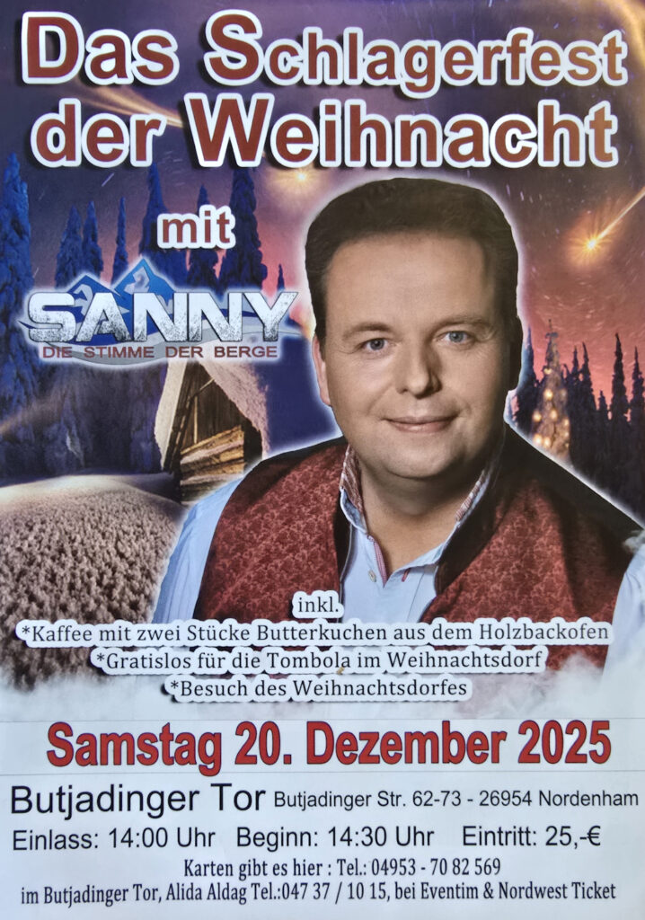 Nordenham – Das Schlagerfest der Weihnacht mit „Sanny – Die Stimme der Berge“