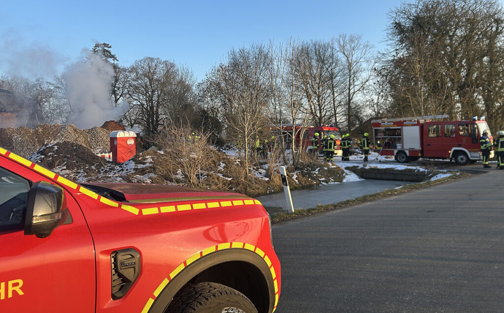 Beim Eintreffen der Einsatzkräfte fanden diese brennenden Unrat auf einer Fläche von rund fünf Quadratmetern vor. Das Feuer befand sich nicht unmittelbar an einem Gebäude. Die Feuerwehr leitete umgehend die Brandbekämpfung ein und rüstete sich mit Atemschutz aus, da zunächst unklar war, welche Stoffe brennen.