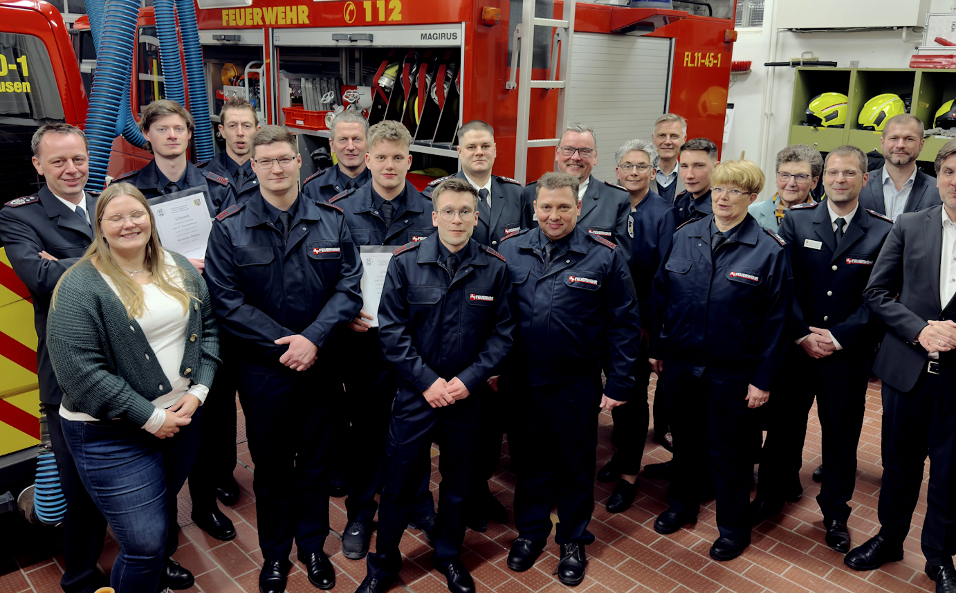 Grußworte überbrachten unter anderem Bürgermeister Nils Siemen, Ortsbürgermeister Ralf van Norden, die Leiterin des Ordnungsamtes Sonja Brödje mit ihrer Stellvertreterin Jacqueline Giehl, die Vorsitzende des Feuerwehrausschusses Annegret Conrady sowie der stellvertretender und zukünftige Stadtbrandmeister Jan-Dirk Balz und dessen zukünftiger Stellvertreter Frederik Kaiser. Auch Pascal Meyer von der Öffentlichen Versicherung richtete Worte an die Versammlung.