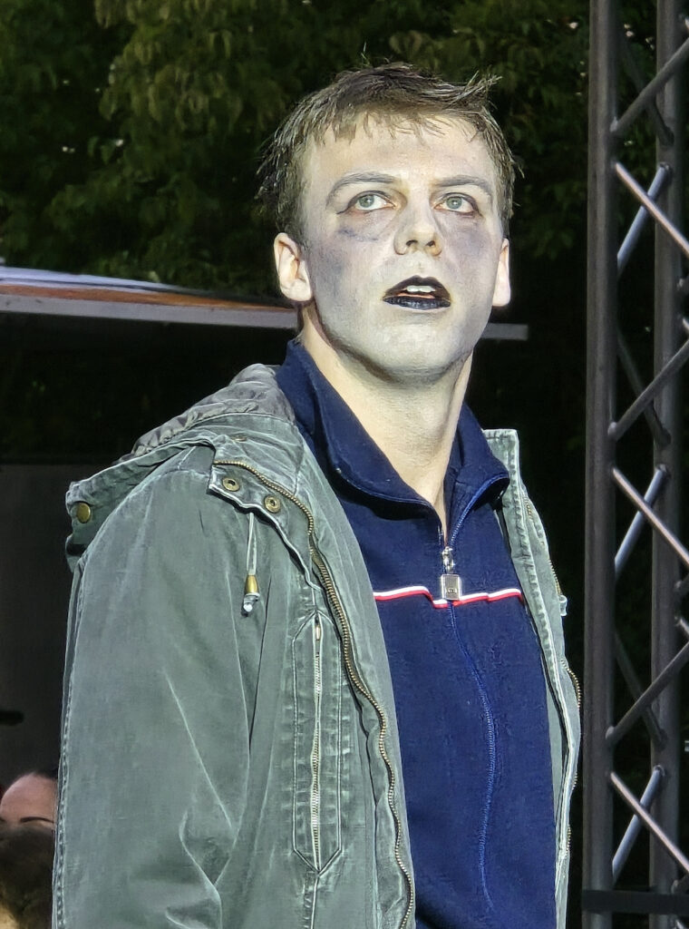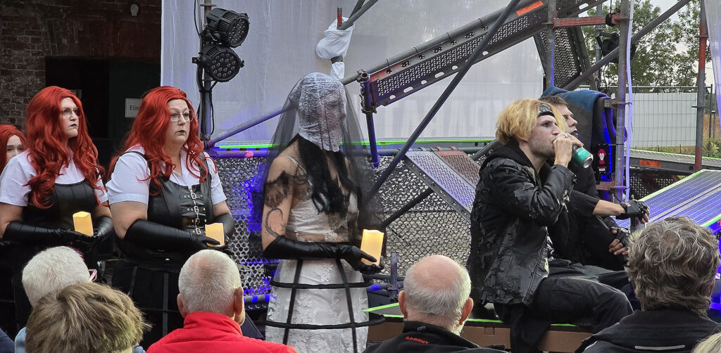 Hier hat Regisseur Frank Wittkowski ganze Arbeit geleistet und aus den jungen Darstellern das Bestmögliche herausgeholt. Ein toller Kontrast zu dem düsteren Stück bieten die leuchtend roten Perücken der Chordamen, die dem Stück noch einmal ihren eigenen Stempel aufdrückten.
