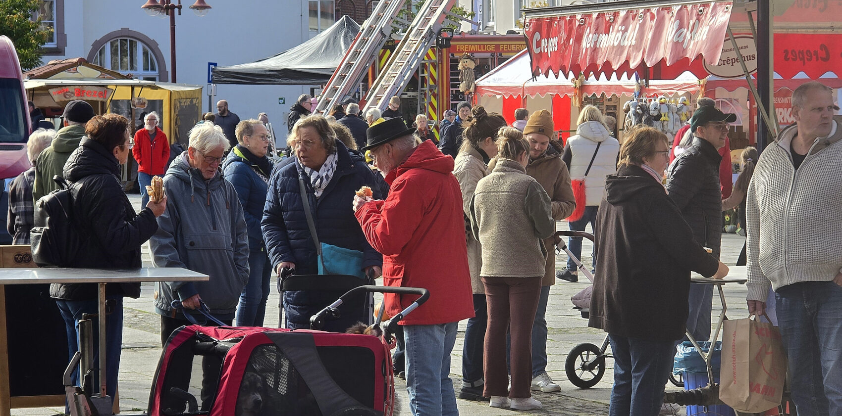 Auch die Fußgängerzone war an diesem Ochsenmarkt-Sonntag sehr gut gefüllt, luden doch die Geschäfte zum Shoppen ein. Zudem gab es diverse Verkaufsstände mit Leckereien und jede Menge Stände zum Stöbern. Ob ätherische Öle, Mineralien, besondere Geschenke, das Angebot war sehr vielfältig. Und wer noch ein defektes Elektrogerät mitbrachte, der hatte sogar die Chance, dass dieses beim Repair-Café des Mehrgenerationenhauses direkt vor Ort repariert wurde. (Fotos und Text: Kerstin Seeland)