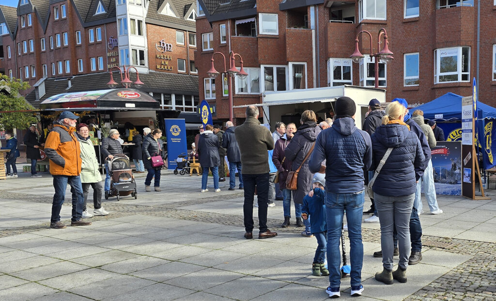 Gutes tun konnten die Besucher des Ochsenmarktes auf der Servicemeile, auf dem Marktplatz, auch noch bei dem Lions-Club Nordenham-Elsfleth. Hier startete an diesem Sonntag der Verkauf der Adventskalender, von denen die Lions Club Nordenham-Elsfleth und Brake jedes Jahr rund 6.500 Stück in Umlauf bringen. Auch hier fließen die Einnahmen in diverse soziale Projekte, in den drei Gemeinden verteilt.