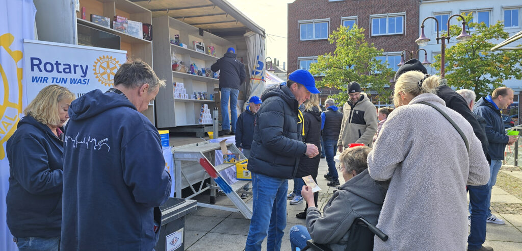 Die Rotarier, rund 20 Ehrenamtliche in zwei Schichten, gleich nebenan, mit einem LKW voller Preise, verkauften Lose, deren Erlös dem Verein Lebenswunsch zugutekommt. Die Besucher des Ochsenmarktes machten vom dem Loskauf reichlich Gebrauch und so manch einer konnte dann auch noch – nachdem er Gutes getan hatte – mit einem Gewinn nach Hause gehen.