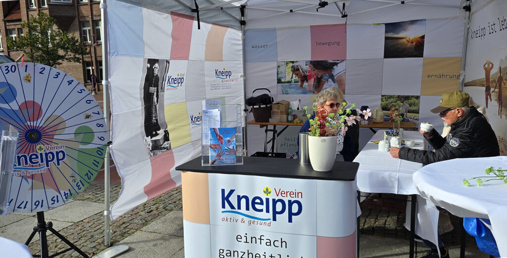Beim Kneipp-Verein konnten die Besucher im windgeschützten Pavillon sich über die verschiedenen Angebote informieren und dabei in aller Ruhe auch noch einen Blick auf die „Rostheuler“ werfen, die mitten auf dem Marktplatz Aufstellung genommen haben.
