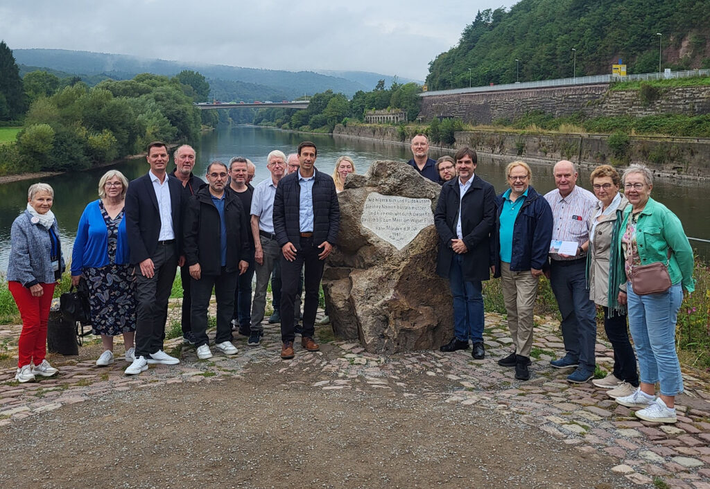 Im Anschluss reiste die Gruppe weiter in die Dreiflüssestadt Hannoversch Münden, wo sie von Bürgermeister Tobias Dannenberg empfangen wurde. Gemeinsam besichtigte man bei einer Stadtführung den bekannten Weserstein, an dem Fulda und Werra zur Weser zusammenfließen, sowie die historische Altstadt.