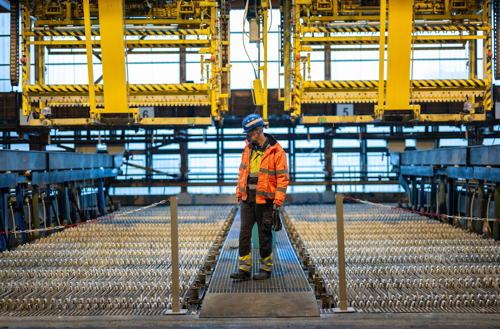 Die Umwandlung erfolgt in mehreren Schritten: In der Rösterei glüht das Gestein bei 900 Grad, in der Laugerei wird es von unerwünschten Metallen getrennt, in der Bäderhalle mit Strom zu Zinkplatten verdichtet und schließlich bei 500 Grad in eine silbrige Masse, die zu Barren gegossen werden, finalisiert.