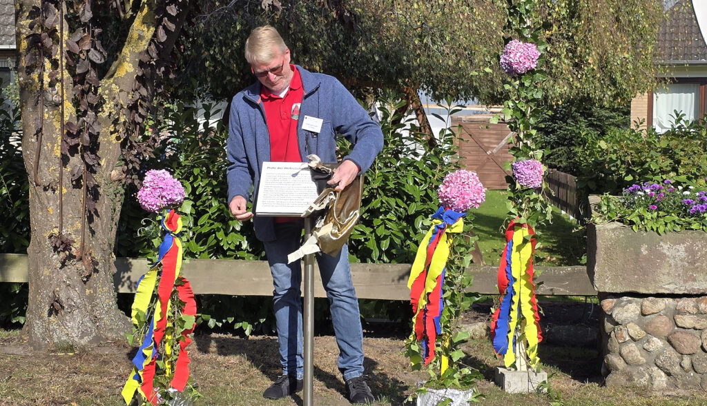 Nach über 40 Jahren erhält das Denkmal neben der Reithalle, in Ovelgönne, eine neue Bedeutung: Mit der Enthüllung einer Infotafel und der offiziellen Benennung des Standortes als „Platz der Verbundenheit“ wird ein starkes Zeichen für Respekt, Toleranz und gelebte Gemeinschaft gesetzt. Uwe Lehmann, Vorsitzender des Bürgervereins Ovelgönne, hat die Feierlichkeiten und auch die Tafel in Zusammenarbeit mit Sophia Wolfram von der Gemeinde Ovelgönne und Arman Džaferagiċ, Leiter des Handwerksmuseums Ovelgönne, vorbereitet.