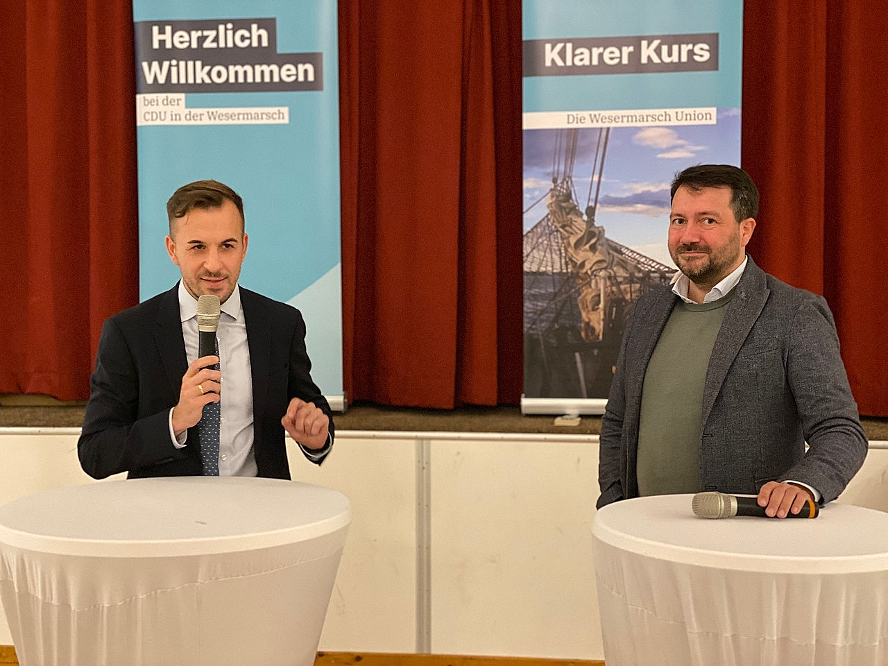 Einen intensiven Austausch über die Zukunft der Region und die Herausforderungen der Bundespolitik gab es zwischen dem CDU-Bundestagsabgeordneten Bastian Ernst und dem CDU-Landesvorsitzenden Jochen Steinkamp beim CDU-Kreisparteitag in Ovelgönne. Moderiert wurde das Gespräch vom CDU-Kreisvorsitzenden Björn Thümler.
