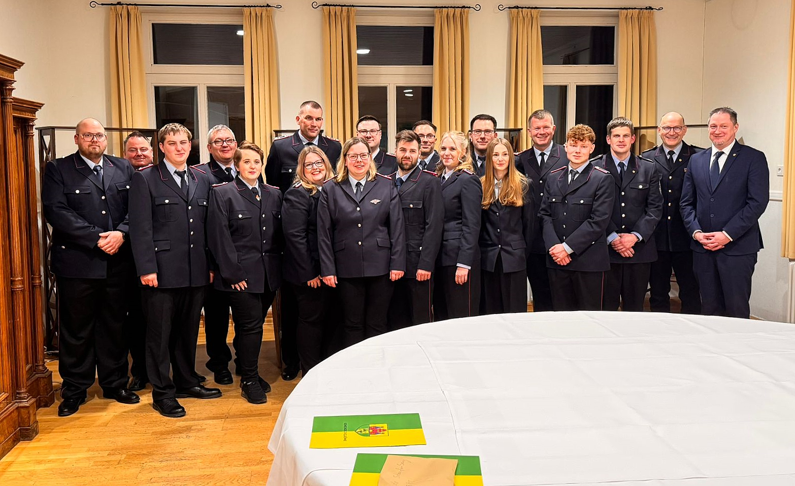 Auch innerhalb der Wehr wurden wichtige Weichen gestellt: Michael Störk wurde von den anwesenden Kameraden und Kameradinnen erneut zum Jugendfeuerwehrwart gewählt, Jana Michaelis übernimmt kommissarisch das Amt der stellvertretenden Jugendfeuerwehrwartin. Zahlreiche Kameradinnen und Kameraden erhielten neue Dienstgrade, die im Rahmen einer Umstellung nun stärker an Dienstzeit und absolvierten Lehrgängen ausgerichtet sind.