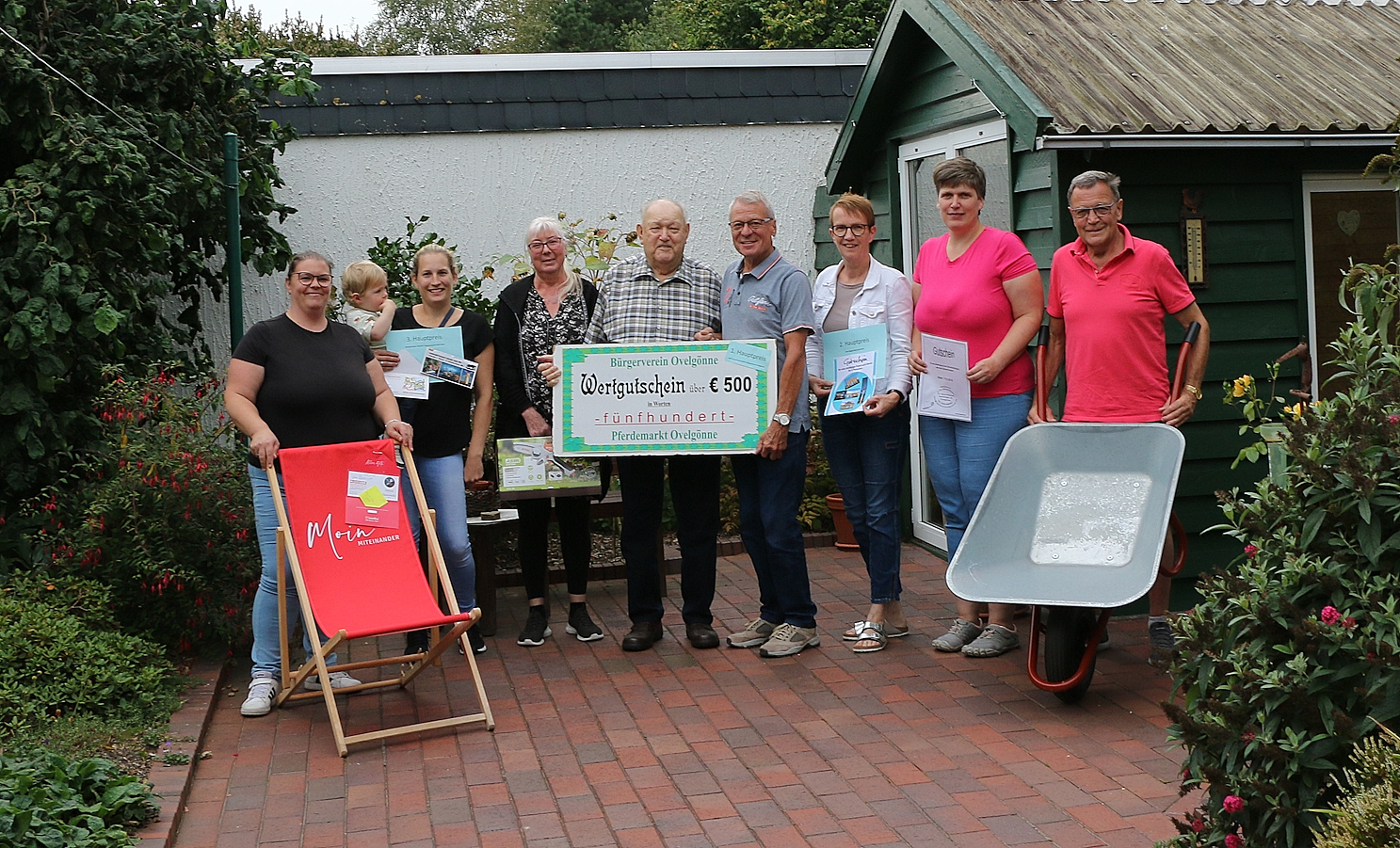 Weitere Hauptpreise gingen an, von links Familie Schweig, Gutschein und Liege von Firma H. Schellstede, 3. von links Petra Bohanan, Gehölzsäge, 2. von rechts Meike Urban, Gutschein Zahnärztin Prömmel und rechts Erwin Diers, Gartenkarre von Zimmerei Klockgether. (pm/lr – Foto: privat)