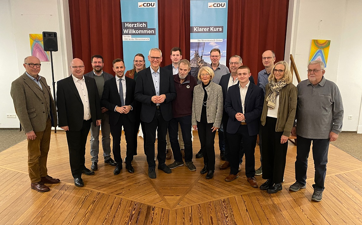 Mit einem eindrucksvollen Vertrauensbeweis von 98 Prozent ist Björn Thümler beim CDU-Kreisparteitag am Donnerstag, 30. Oktober 2025, im Hotel „Zum König von Griechenland“ in Ovelgönne in seinem Amt als Kreisvorsitzender bestätigt worden. 51 Mitglieder votierten für ihn, es gab eine Gegenstimme. Als stellvertretende Vorsitzende wurden Gabriele Wobbe-Sahm (Stadland), Jannes Böck (Elsfleth) und Thomas Hundhausen (Nordenham) gewählt. Die Amtszeit beträgt zwei Jahre.