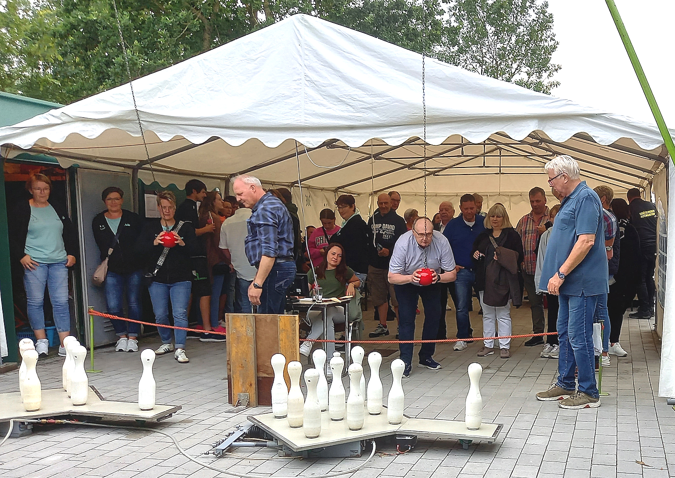 Von Dienstag bis Freitag haben zahlreichen Gruppen und Einzelteilnehmer am Luftkegeln des Bürgervereins Augustgroden teilgenommen. An zwei Stationen wurde gekegelt, was das Zeug hielt und zwischendurch stärkten sich die Spielerinnen und Spieler mit Grillwurst, Pommes und Getränken. Wer das Glück noch auf andere Weise herausfordern wollte, konnte das beim Würfeln um Wurst- und Käsepreise.