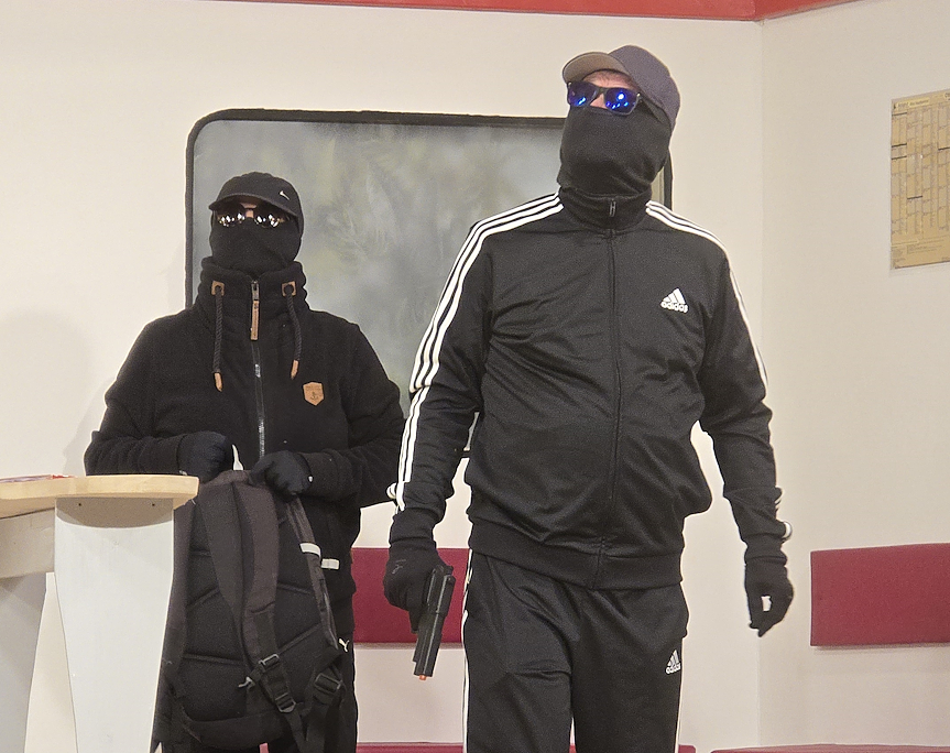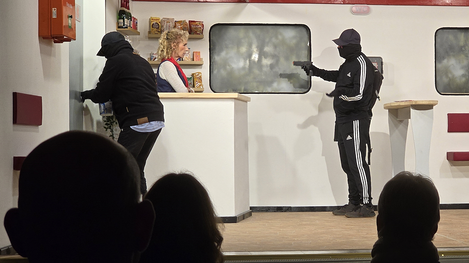 Und dann hätte so schön sein können, doch auf einmal müssen sich die Räuber auf eine Störung im Zugverkehr einstellen, die die Pläne dieses der beiden Räuber komplett über den Haufen wirft. Denn die Station, an der der Zug üblicherweise halten soll, wird nicht angefahren, der Zug fährt einfach weiter. Jetzt heißt es zu improvisieren.