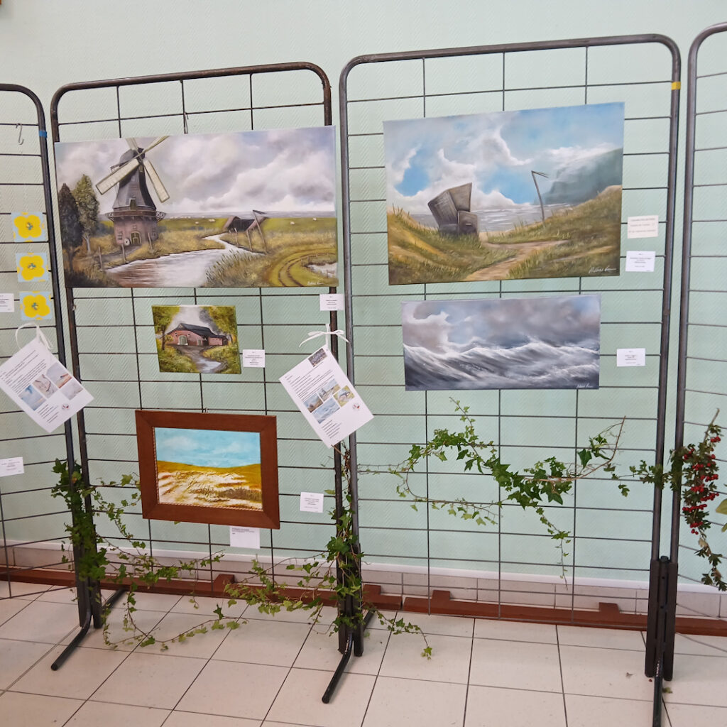 Sechs Künstlerinnen und Künstler aus der Wesermarsch – Ulrike Schmitt (Galerie Rimaschi), Gisela Boehle, Matthias Kramer, Ursel Kopp und Sigrid Burmester – präsentieren ihre Werke zum diesjährigen Thema „Strandkabinen“. Die Herausforderung für die deutschen Teilnehmer: In Deutschland sind Strandkörbe statt Strandkabinen üblich, was kreative Interpretationen erfordert. Neben den themenbezogenen Arbeiten werden auch weitere Werke gezeigt. Besucher können ihre Favoriten bewerten – die Ergebnisse werden am letzten Ausstellungstag bekanntgegeben.