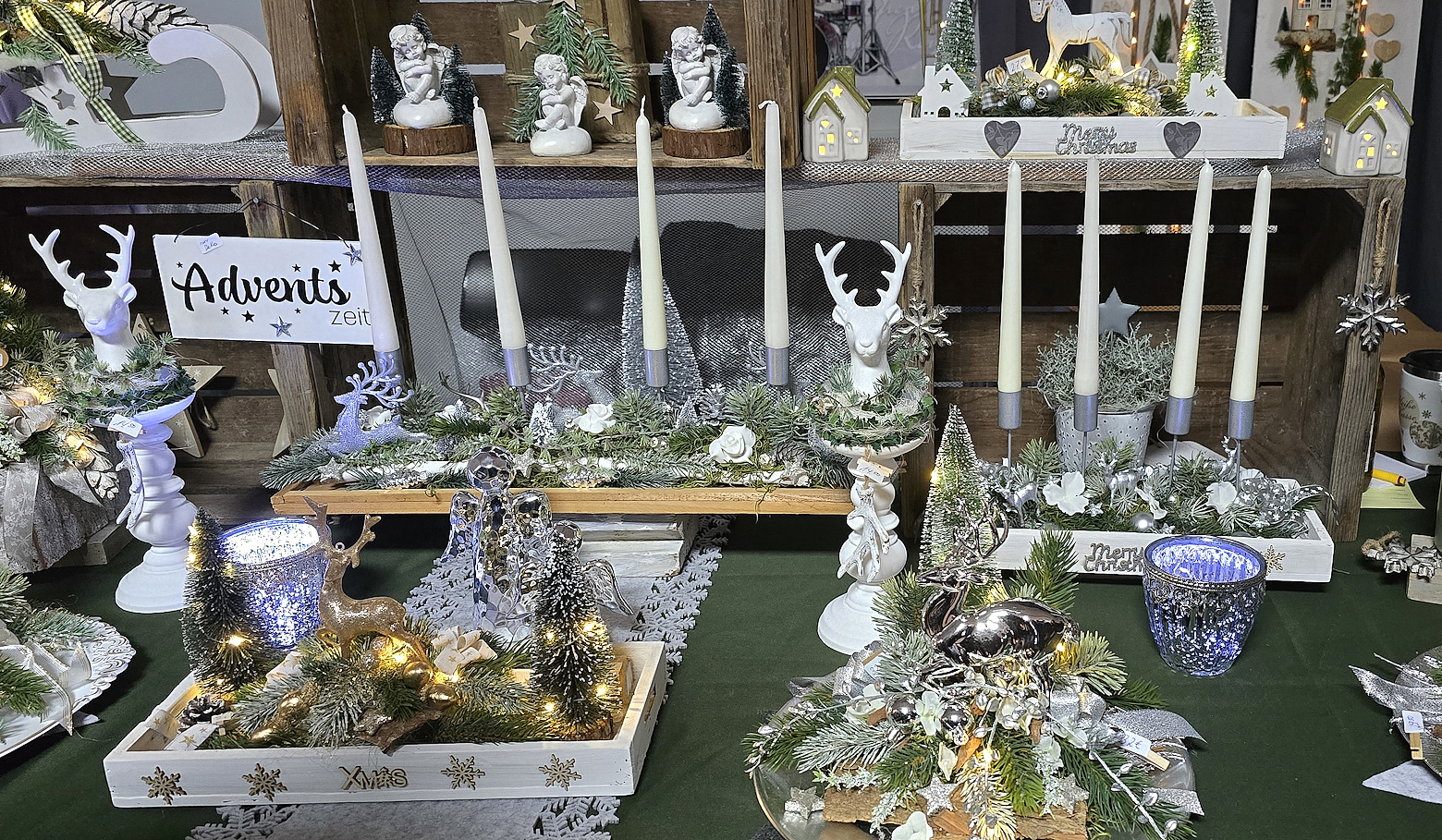Weihnachtsdekorationen in alle möglichen Farben und Varianten, Adventskränze und –gestecke, kleine Geschenke, handgemachte Seifen, Schmuck und vieles mehr konnten die Besucher hier erwerben.