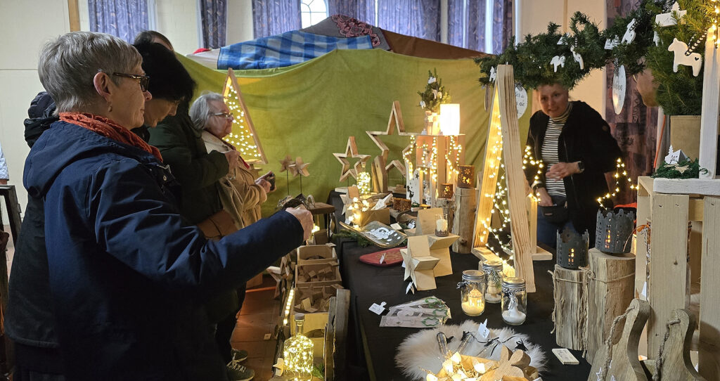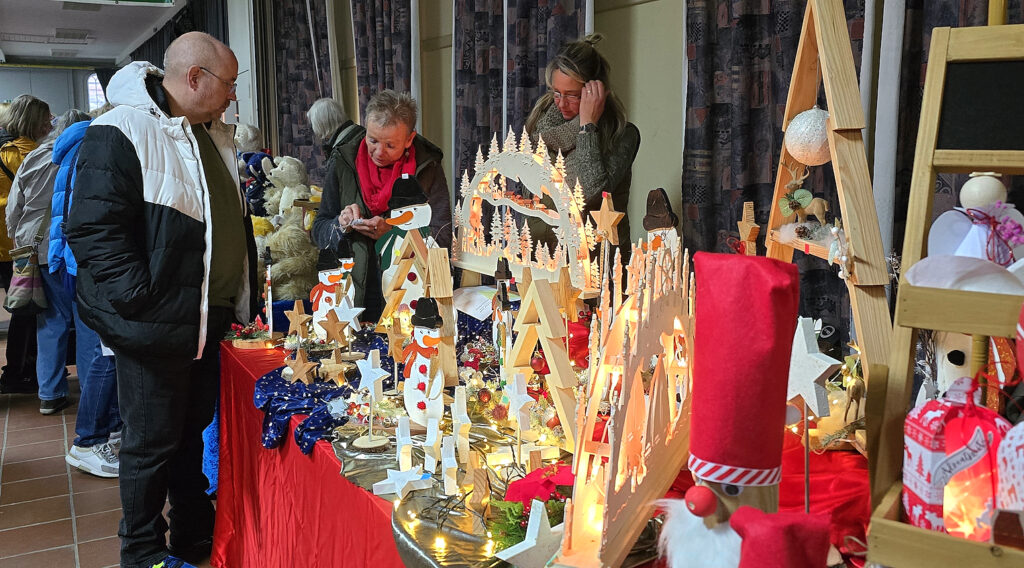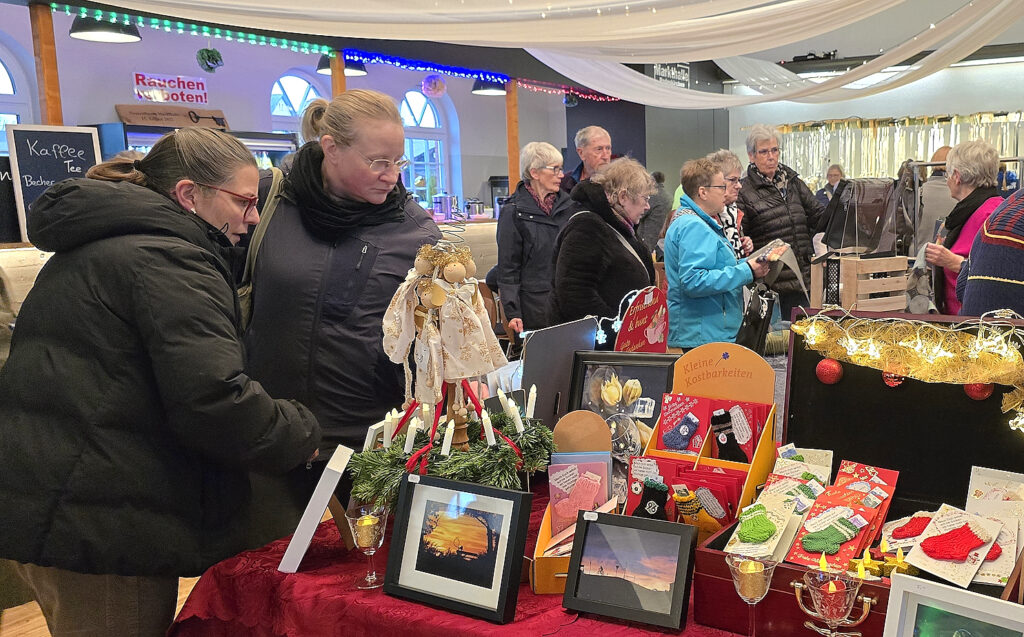 Als die Türen am Sonnabend um 13 Uhr geöffnet wurden, strömten wieder die Besucher in Scharen in die Halle. Hier verteilte es sich schnell an den einzelnen Ständen, die wieder mit Lichterketten und LED-Kerzen geschmückt waren und eine heimelige Atmosphäre verströmten.