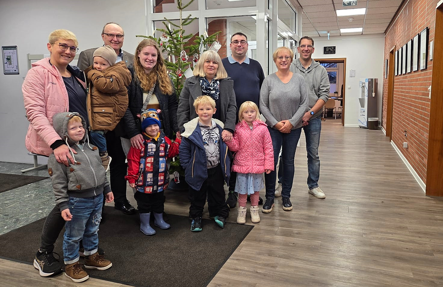 Der Weihnachtsbaum im Rathaus wurde vom Stadlander Unternehmer Patrick Grimm gestiftet, die Beleuchtung spendete die Elektrotechnikfirma Lepies. Geschmückt wurde die Tanne von den Kindern der Kita Deichkinder aus Kleinensiel.