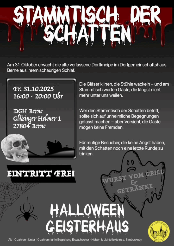 Berne – Halloween-Party „Stammtisch der Schatten“ im Dorfgemeinschaftshaus