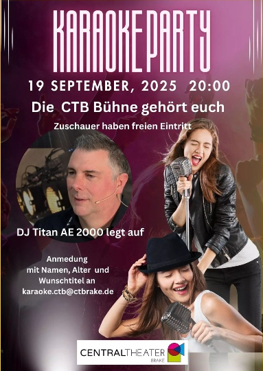 Meldet euch an zur Karaoke-Party im Centraltheater. Hier könnt ihr so richtig zeigen, was in euch steckt. Jeder, der teilnehmen möchte, kann zu Instrumental-Playbacks bekannter Lieder singen, während der Songtext auf einem Bildschirm angezeigt wird. Seid mutig und präsentiert euch und eure Lieblings-Songs dem Publikum. Habt einfach Spaß. (pm/lr)