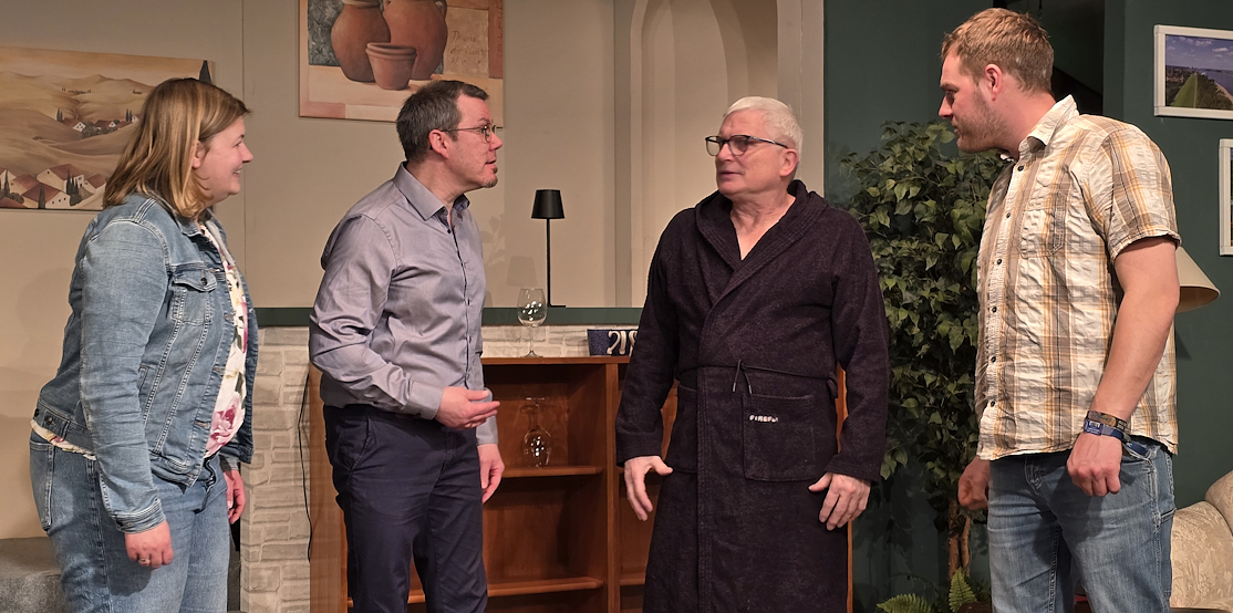 Die Komödie – fast jedoch ein Schauspiel – von Armelle und Emmanuel Patron, in der Plattdeutschen Fassung von Christian Richard Bauer und unter der Regie von Jens A. Rose erzählt von dem älteren Ehepaar Johanna (Anne Jarbourg) und Winfried (Klaus Nicolaisen), das seine drei erwachsenen Kinder Peer „Pitti“ (Tobias Petershagen“, Julius „Julie“ (Jan Borries) und Luisa „Lieschen“ (Marisa Soeken) überraschend zu sich nach Hause bestellt.