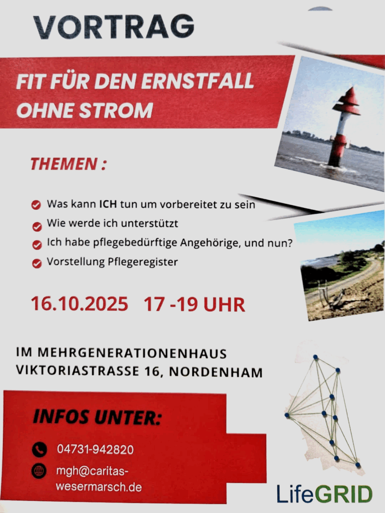 Nordenham – Zudem besteht bei diesem Termin die Möglichkeit sich über das neue Pflegeregister in der Wesermarsch zu informieren und sich eintragen zu lassen. (pm/lr)