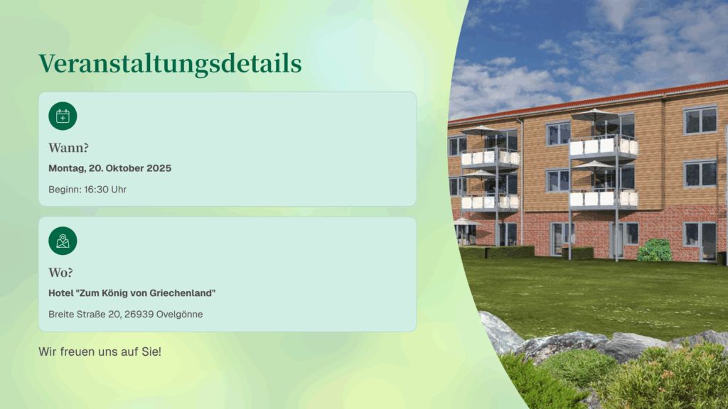Das inklusive Seniorenwohnprojekt in Ovelgönne geht in die nächste Phase und die Stiftung Lebensräume Ovelgönner Mühle freut sich, dass es mit den Bauarbeiten sichtbar vorangeht. Daher sind alle Interessierten herzlich zu einem Informationsnachmittag einladen. (pm/lr – Foto: Wohnungsbau Wesermarsch)