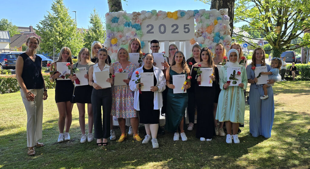 Die Auszubildende der Abschlussklasse der Fachschule für Sozialpädagogik der BBS Wesermarsch haben nach zweijähriger Ausbildung (im Anschluss an die Ausbildung zur / zum sozialpädagogische Assistent:in) heute das Abschlusszeugnis erhalten und dürfen sich „staatlich geprüfte Erzieher:in “ nennen und erhalten den Grad des Bachelor Professional in Sozialwesen.